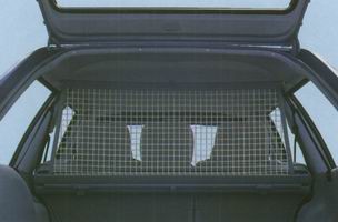 Der andere Teil des Doppelrollos ist ein Sicherheitsnetz. Es wird am Dach, je nach Stellung der Fondsitzlehne, an zwei Stellen eingehängt und schützt bei einem Auffahrunfall die Fondpassagiere vor dem Ladegut. |